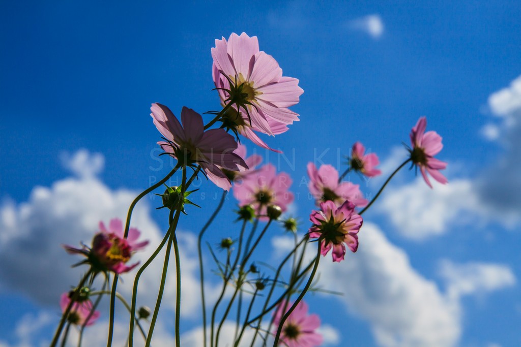 Cosmos Flowers Reaching for a Vibrant Sky