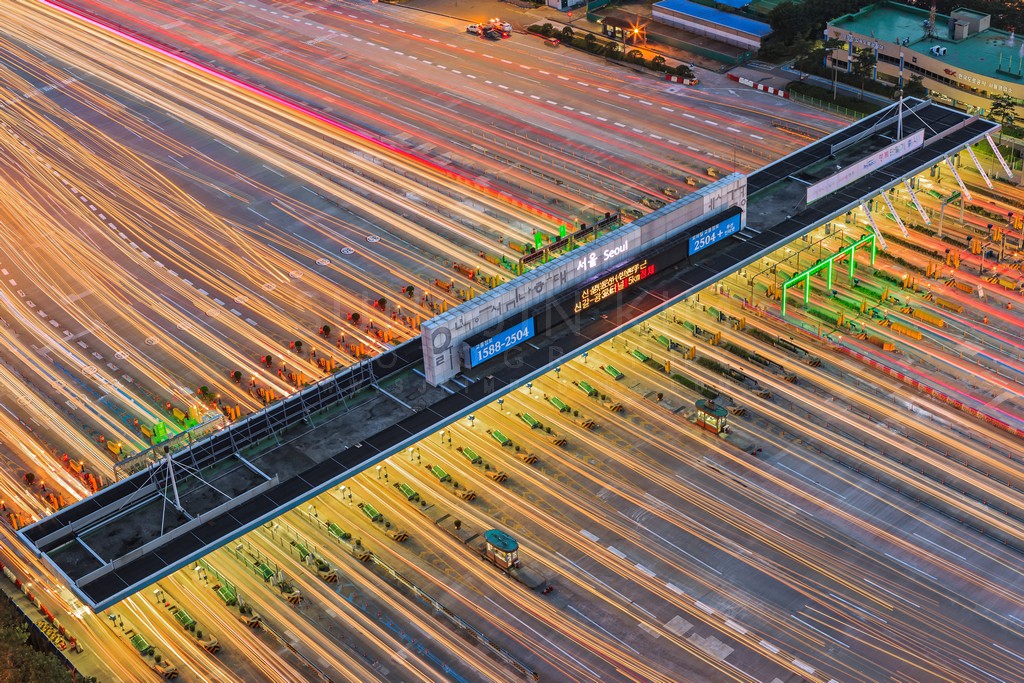 Urban Highway Toll Plaza Light Trails